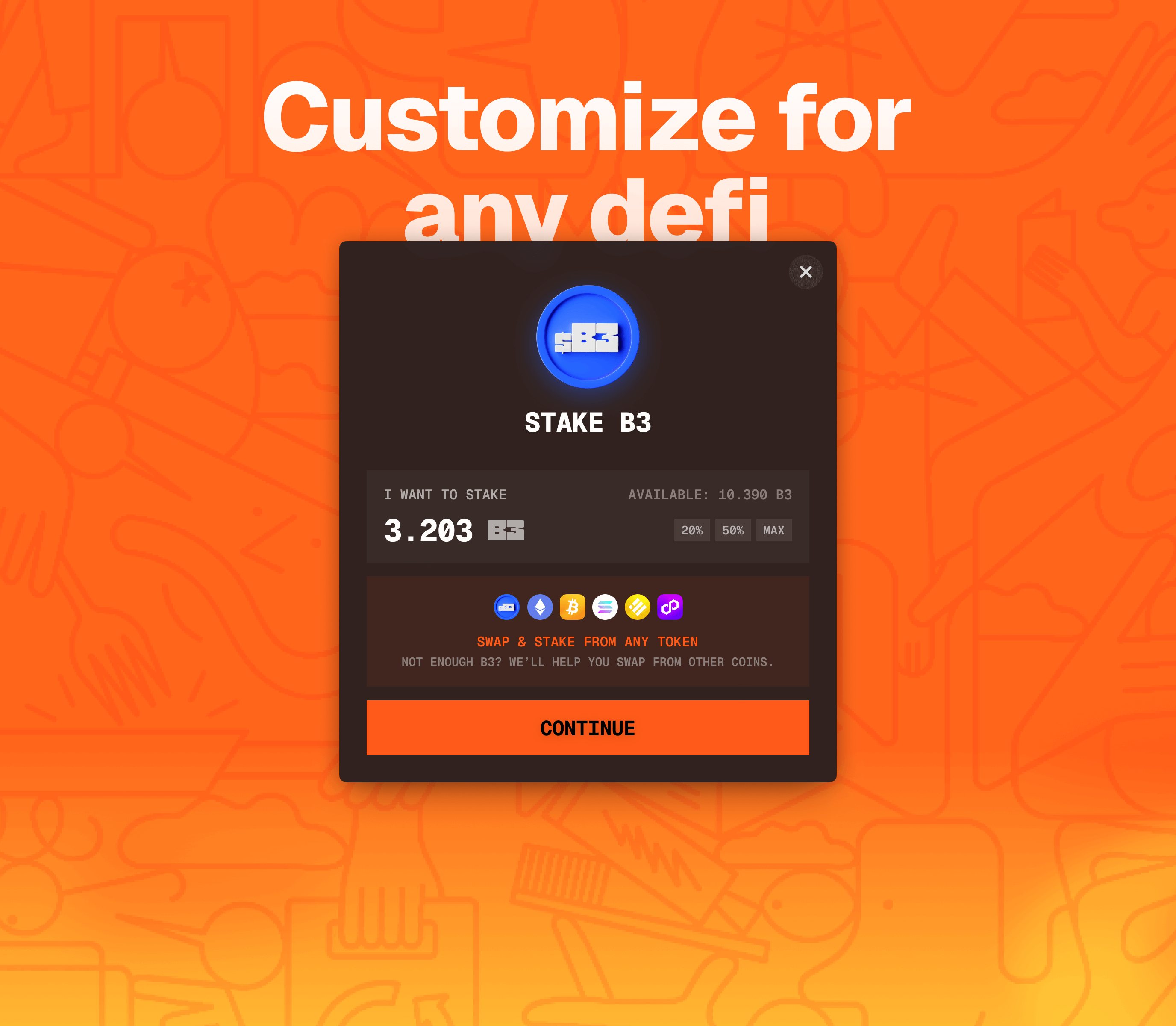 AnySpend is B3's payment infrastructure for crypto. It handles cross-chain routing, token conversion, and fiat onramps so your users can pay with whatever they have in their wallet. You receive the token you want, on the chain you want.