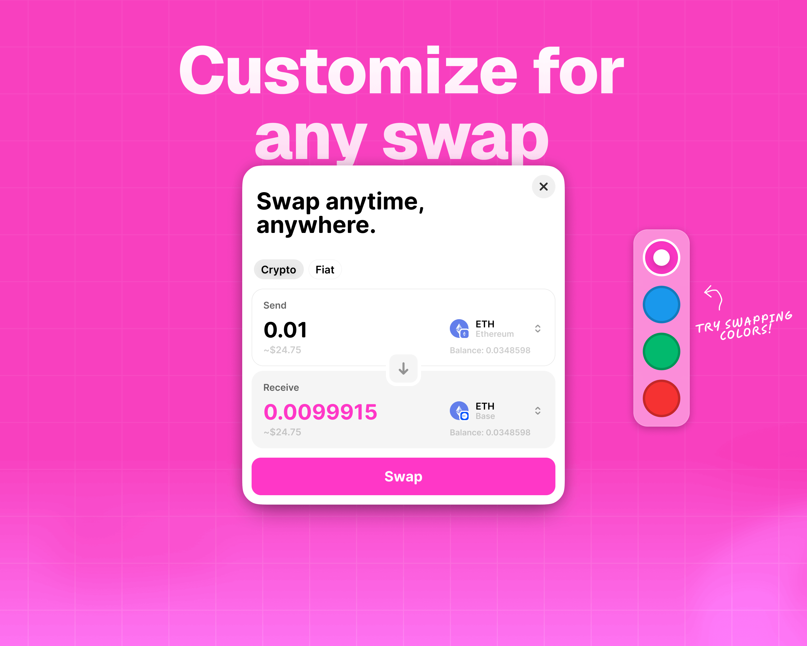 Accept payments in any token, on any chain. Swap, checkout, deposit, and fiat onramp.